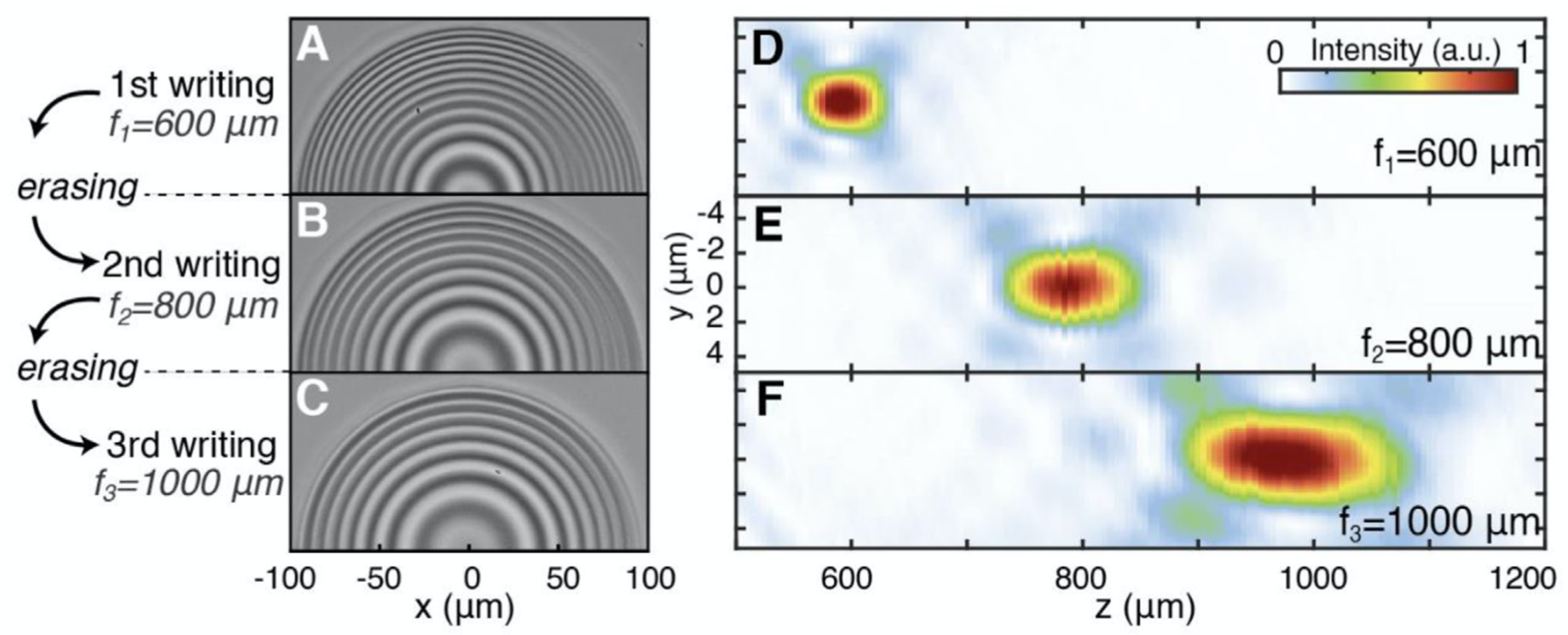 This is a research that strongly involves the unique characteristic of surface structuring in azobenzene-containing polymers. Antonio Ambrosio discovered and reported the crucial aspects of such phenomenon years ago (Nature Communications 3:989, 2012; Physical Review Letters 110, 146102, 2013). The group is now exploiting this possibility to create optical devices that are, in fact, not just tunable but shapeshifting: gratings can tun into lenses and back into gratings, if and when needed (Advanced Materials Interfaces 8, 2101375, 2021; Optics Express 30, 12695, 2022; Laser and Photonics Reviews 16, 2100514, 2022). Introducing structured light in the process is the next step to achieve new schemes for several applications, from optics to microfluidics.