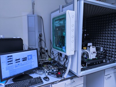 Our triboscopes provide comprehensive tribological analysis. They can run JKR type adhesion tests in dry and lubricated conditions, measuring forces down 1 mN sampling at 1 kHz. These triboscopes can run classical pin-on-disk and ball-on-flat tests while measuring contact areas and contact pressures through phase contrast, and frustrated total internal reflection methods. They can perform contact lubrication gap mapping with epifluorescence and percolation analysis on seals.